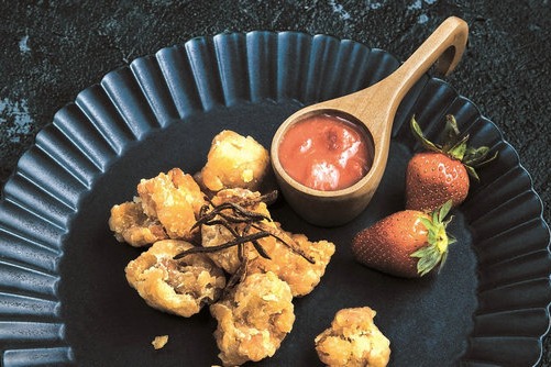 Deep fried spare ribs with dried tangerine peel in strawberry sauce
