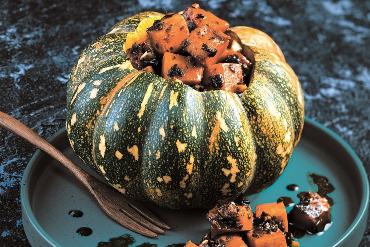 Stuffed pumpkin with garlic and fermented soy bean